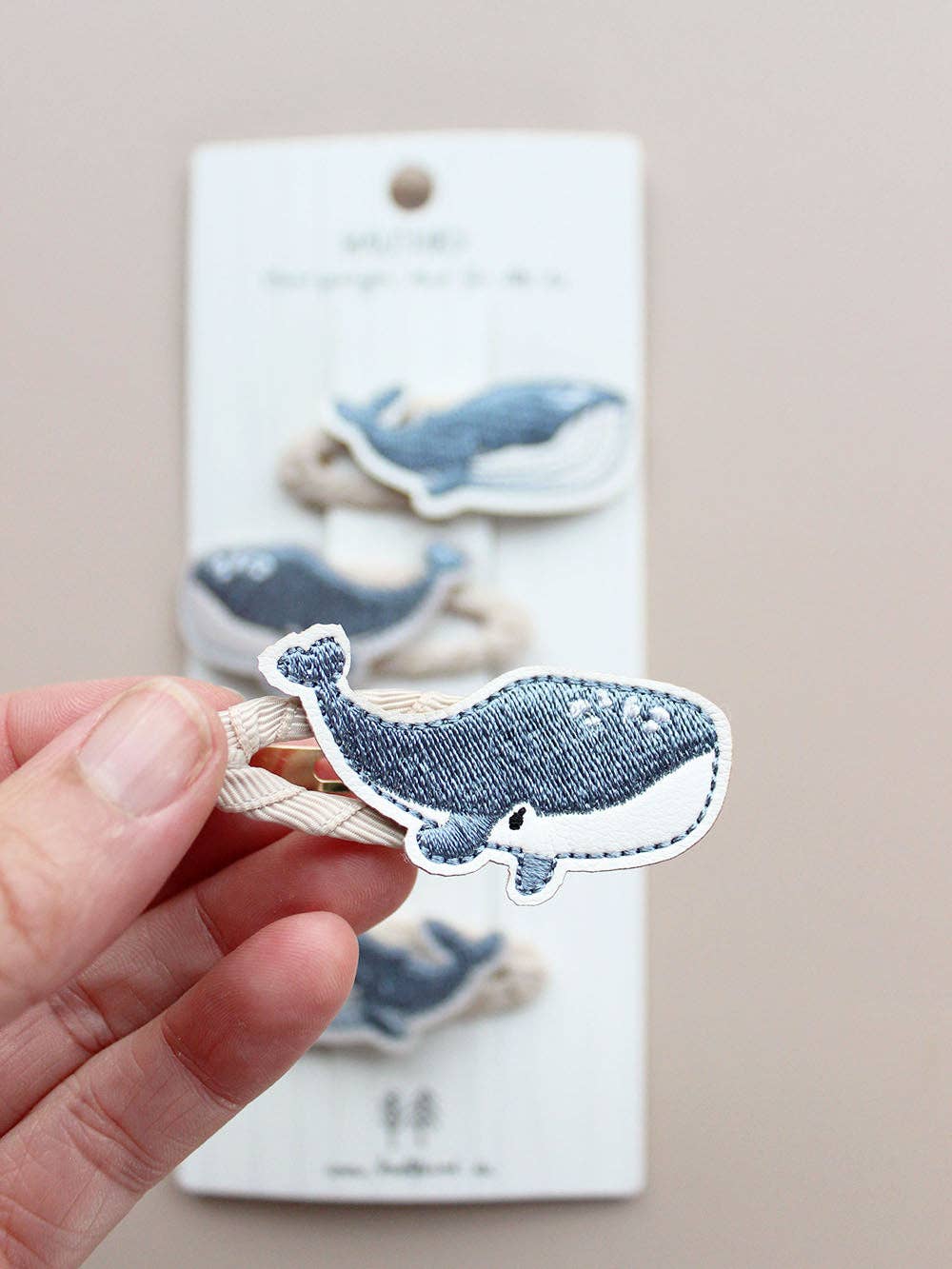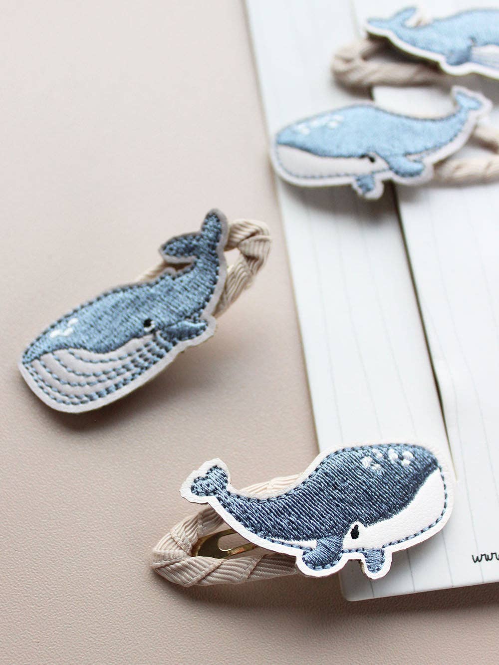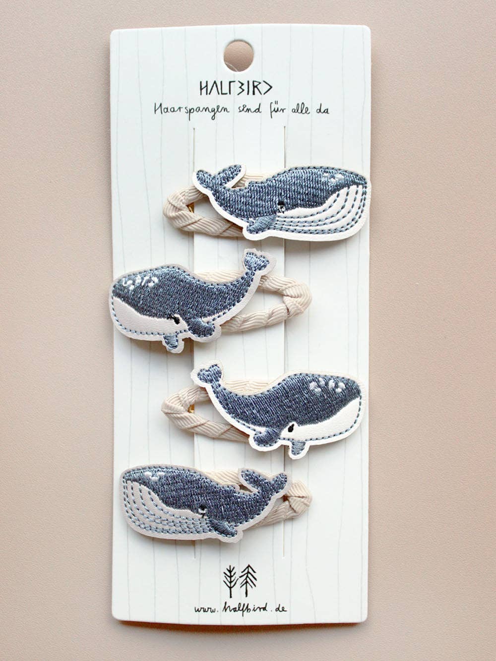 Wunderschöne Wal Haarspangen für alle Köpfe dieser Welt. Hochwertige Stickerei in blau paart sich mit handummantelten Spangen, sodass nichts ziept oder zwickt. Für waltastischen Haarspaß für Groß und Klein!