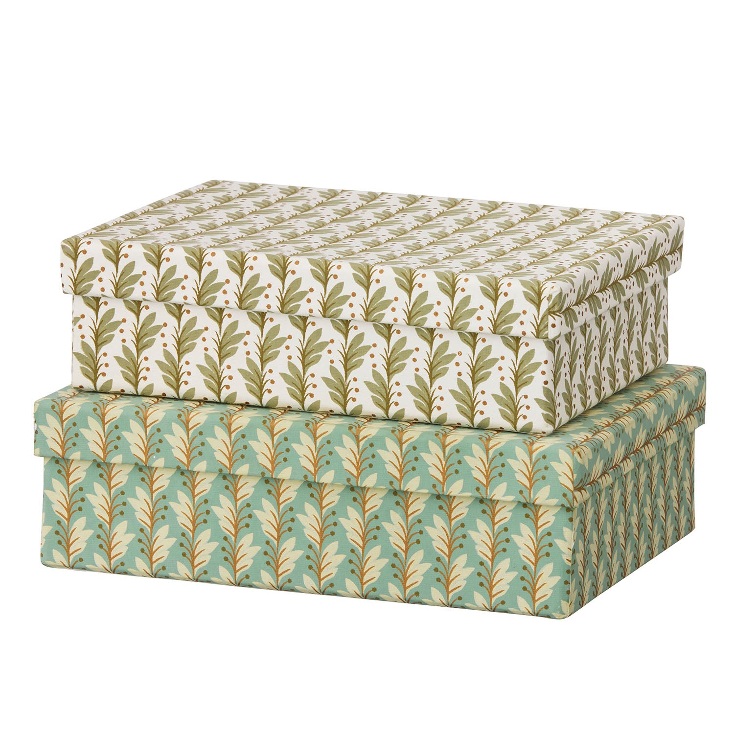 Set mit 2 dekorativen Aufbewahrungsboxen.