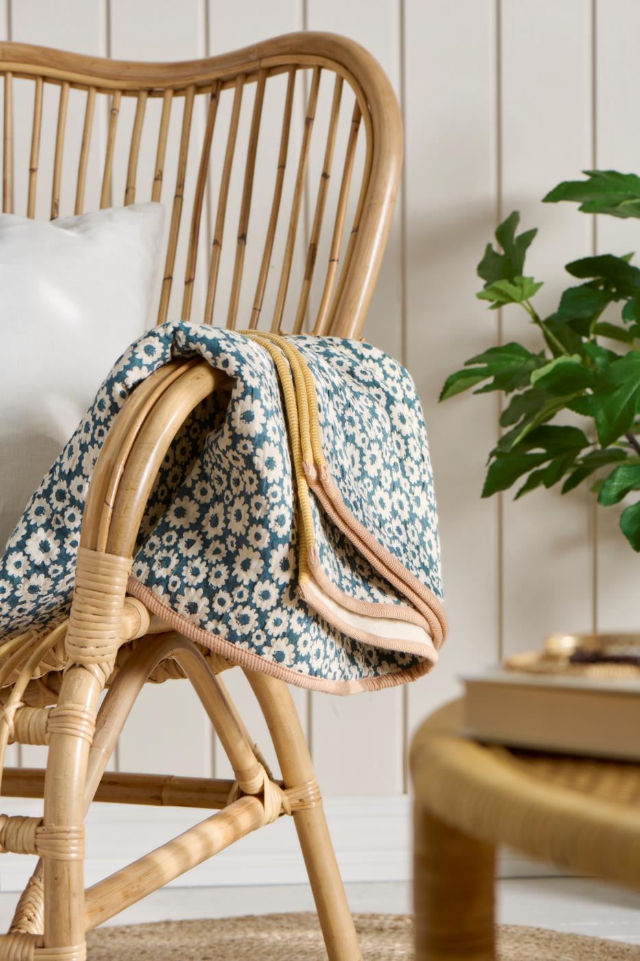 Plaid aus 100 % doppelt gewebter Baumwolle mit dekorativem Print auf der Vorderseite und einfarbiger Rückseite. Das schöne Muster verleiht Ihrem Zuhause Persönlichkeit und Atmosphäre.