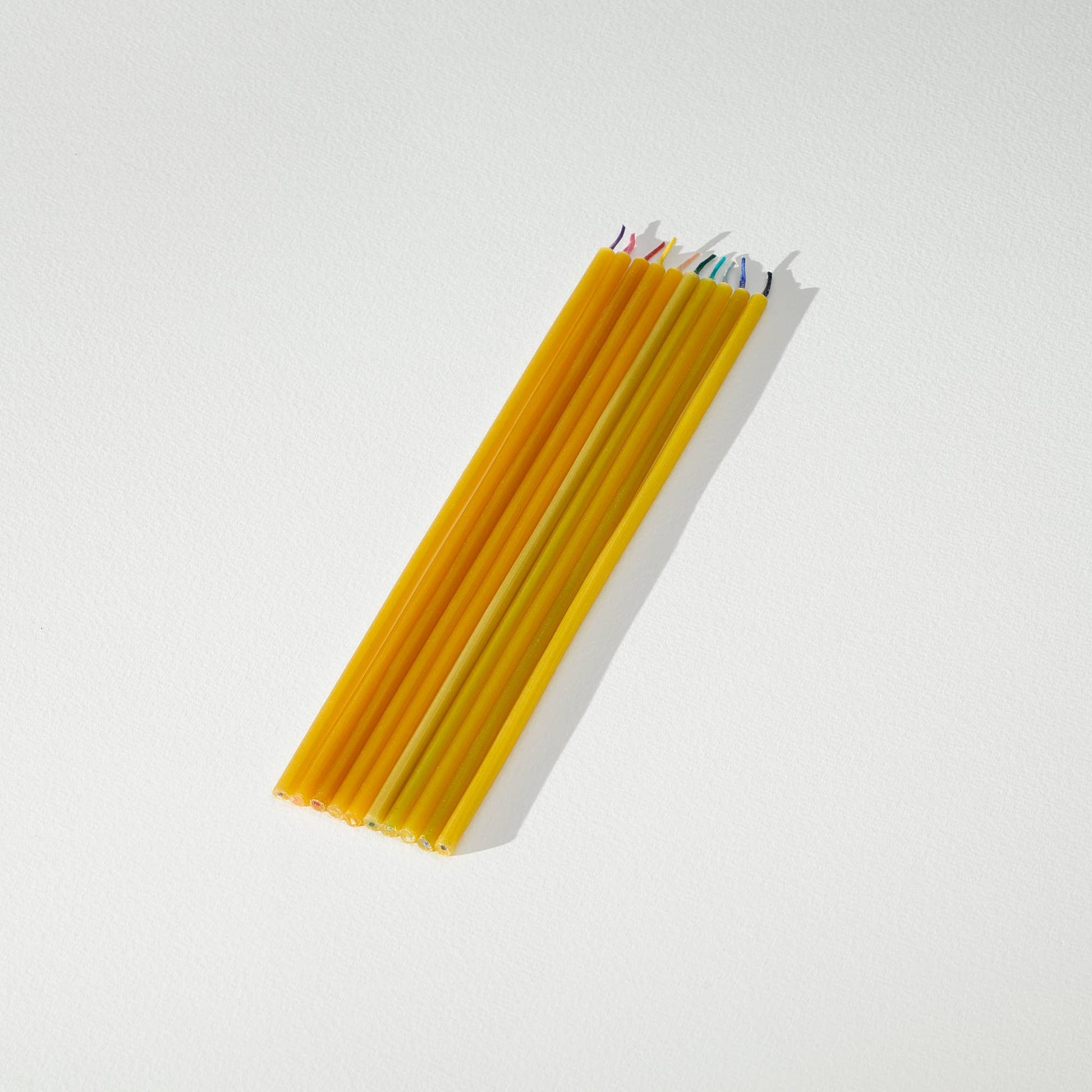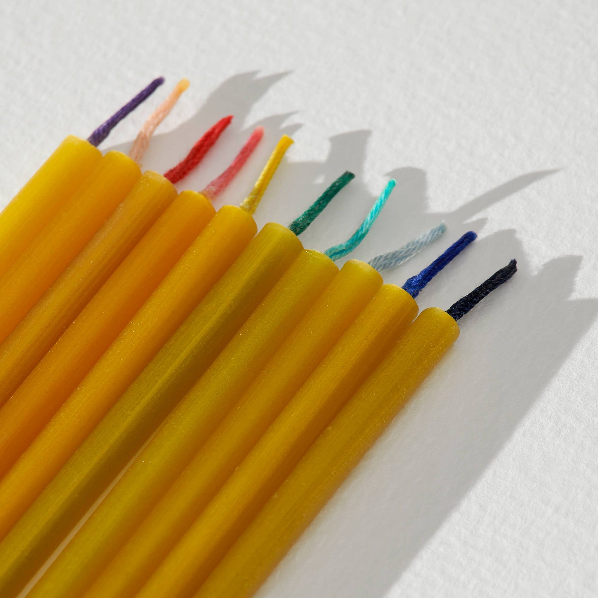 100% Bienenwachs Dünne und feine Kerzen aus reinem Bienenwachs mit bunten Baumwolldochten.