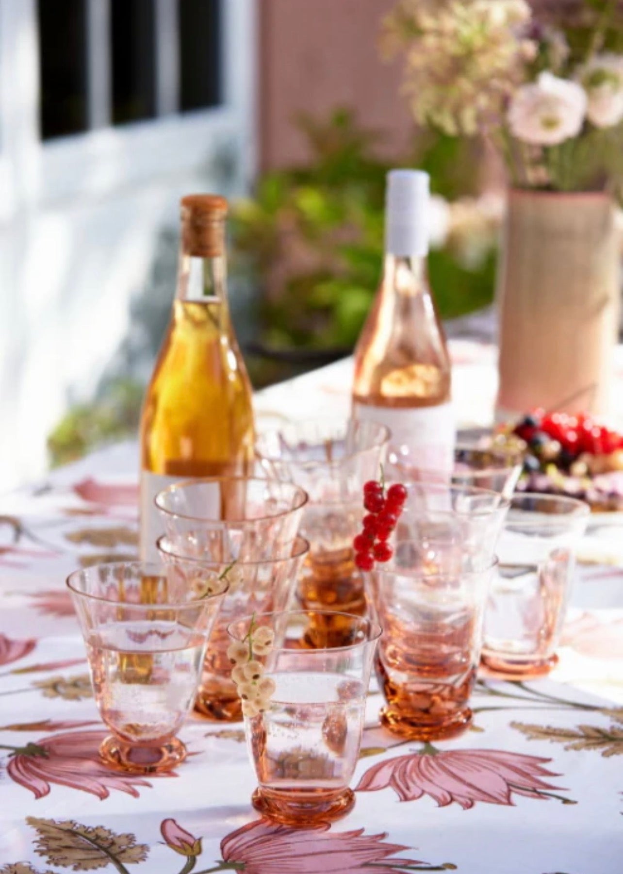 Set mit 2 eleganten, geformten Gläsern in heller Pfirsichfarbe.
